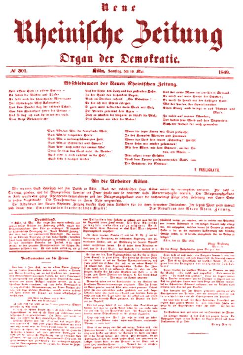 The last issue of the Neue Rheinische Zeitung (No. 301, May 19, 1849) which was printed in red ink |